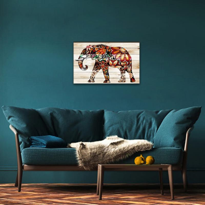 Vera Renkli Fil Baskılı Ahşap Tablo HK1332
