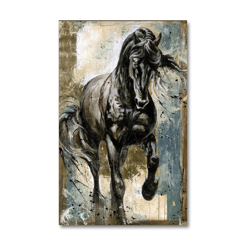 | Vera Siyah Koşan At Baskılı Ahşap Tablo Model 2 |