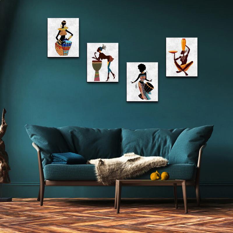 Zenci Kadın Baskılı 4'lü Ahşap Duvar Tablosu Küçük Boy HK1340